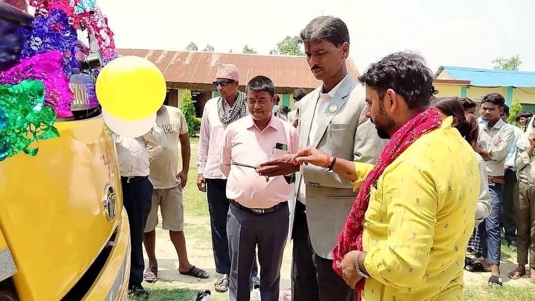 चुनावी एजेन्डाअनुसार विद्यालयलाई बस दिने प्रतिबद्धता जनाउनुभएका यादवले उक्त प्रतिबद्धता पूरा भएको बताउनुभयो ।