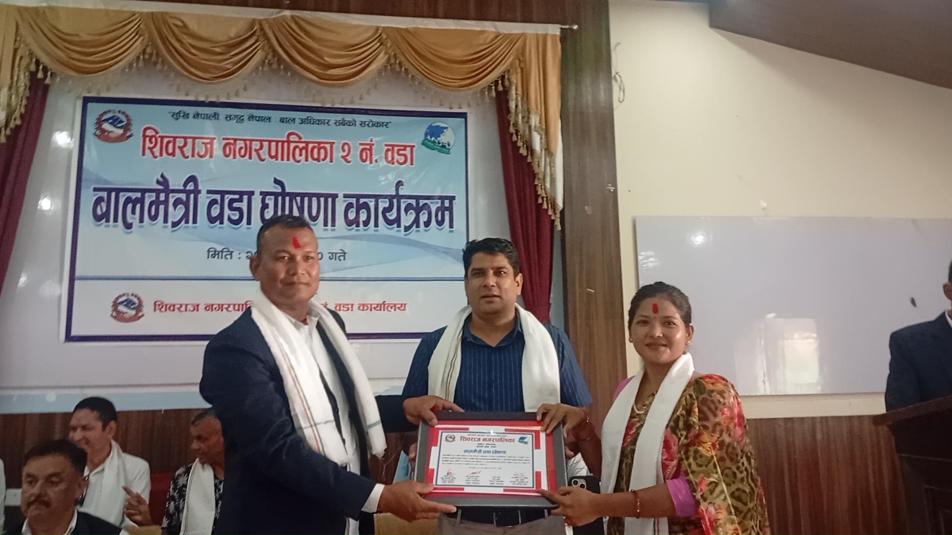 कार्यक्रममा शिवराज नगरपालिकाकी उपप्रमुख शिवकुमारी थारुले बालमैत्री वडा घोषणापत्र सार्वजनिक गर्दै बालश्रम, हिंसा र विभेदका विरुद्ध शून्य सहनशीलताको नीति कार्यान्वयनमा सामूहिक ध्यान दिनुपर्नेमा जोड दिनुभयो।