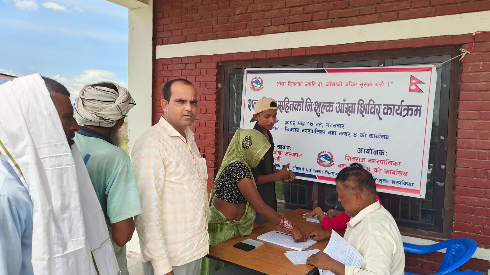 शिवराज नगरपालिका–४ मा वडाध्यक्ष नसिम अहमद खाँको पहलमा निःशुल्क आँखा शिविर सम्पन्न भएको छ । नागरिकलाई आँखा स्वास्थ्य सेवामा सहज पहुँच पुर्‍याउने उद्देश्यसहित आयोजित शिविरमा ठूलो संख्यामा स्थानीयले लाभ उठाएका छन् ।